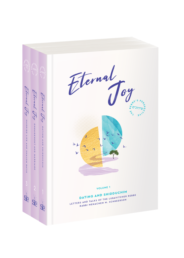Eternal Joy assembles these warm and thought-provoking pearls of the Rebbe’s wisdom in one book. The Rebbe’s approach to successfully building “a faithful edifice in Israel,” a marriage of “eternal joy,” is now accessible to all.